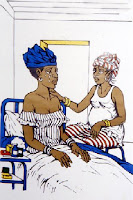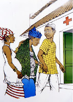 Son mari l'emmène au dispensaire pour la faire soigner.