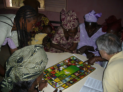 Voici le jeu de l'oie que nous avons conçu avec une équipe d'adolescents, une manière ludique d'aborder la santé dans le monde : le but étant d'arriver le premier à la dernière case, les bons comportements font avancer et les mauvais nous font reculer. Ce jeu plait aux enfants de 6 à 13 ans, sur les cinq continents !